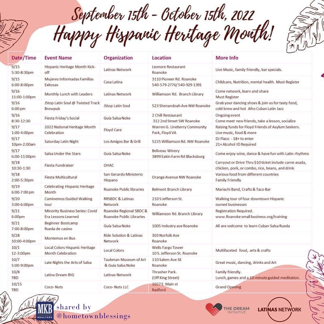 @Dominicancoconuts @KatPascalOfficial @officialkatpascal @LatinasNetwork @casalatinarv @TwistedTrackBrewpub @jstoplatinsoul @SalsaNoke @floyd.community.action.for.racial.equity @losamigosroa @San-Gerardo-Ministerio-Hispano-1389416401137759 @roanokepubliclibraries @RRSBDC @ridesolutions @LocalColorsVA @TaubmanMuseum
